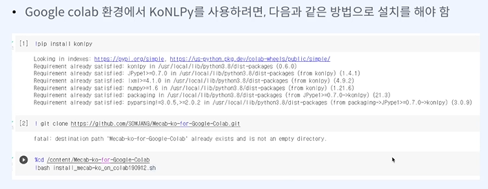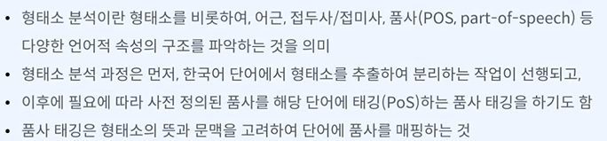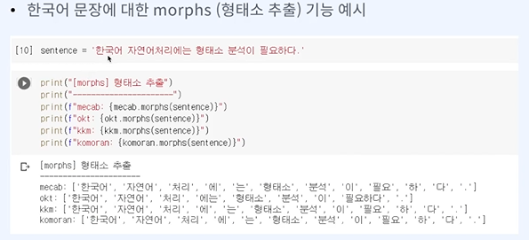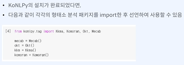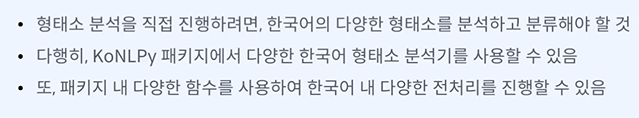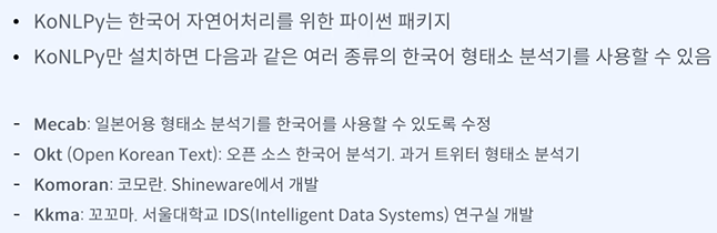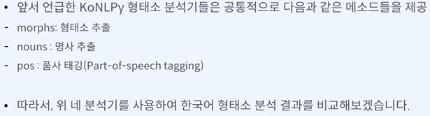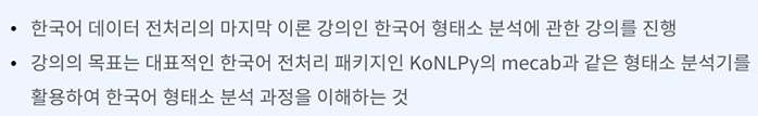 목표 - 다양한 한국어 형태소 분석기를 포함하는 KoNLPy를 활용하여 한국어 형태소 분석 과정을 이해할 수 있다.
