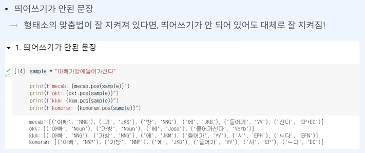 작업에 맞는 품사 분류를 고르면 된다.