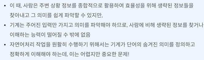 계속 업데이트가 필요하다!, 맥락적으로 이해해야 하는 것들을 표현할 수 없다.
