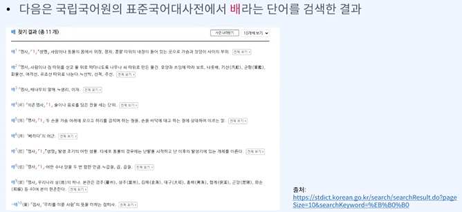 통계적으로 많이 사용되는 뜻은 있겠지만 일단 배의 의미는 10개나 된다.