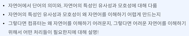 목표 - 자연어에서 단어의 의미와 단어 간 유사성과 모호성에 대해 이해할 수 있습니다.