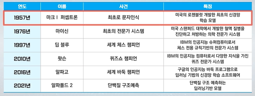 퍼셉트론으로 시작하여 알파폴드 2로 끝나는 6개가 나온다.