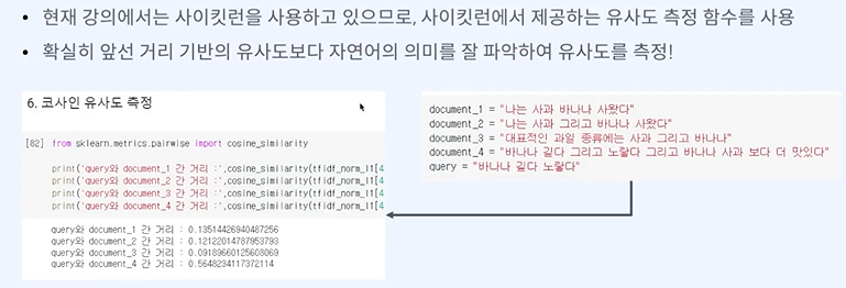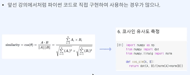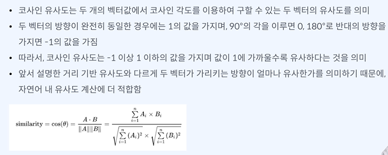 벡터간 유사도를 볼 때 코사인 유사도를 많이 본다.