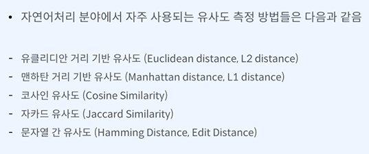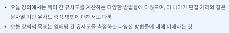 목표 - 임베딩 간 유사도를 측정하는 다양한 방법들을 알 수 있다.