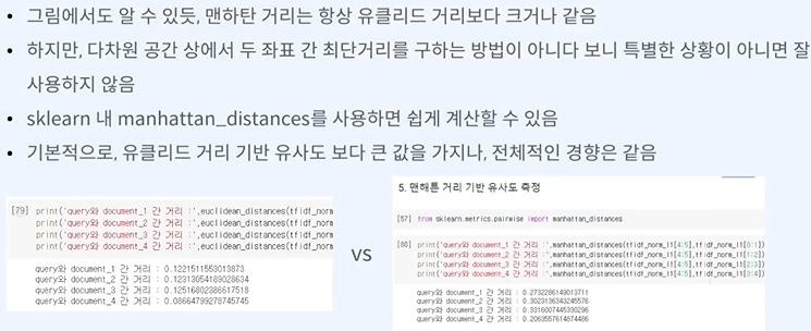 유클리디안이랑 큰 차이는 안날것 같다.