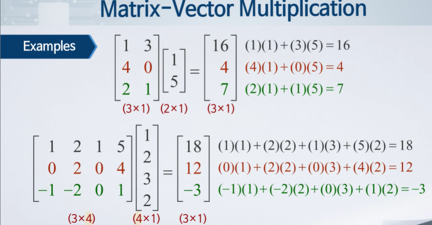 (3 x 2) ( 2 x 1) = (3 x 1)입니다.
