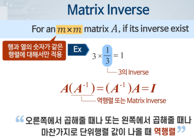 역행렬 - Matrix Inverse - 항상 존재하는 것은 아니다.