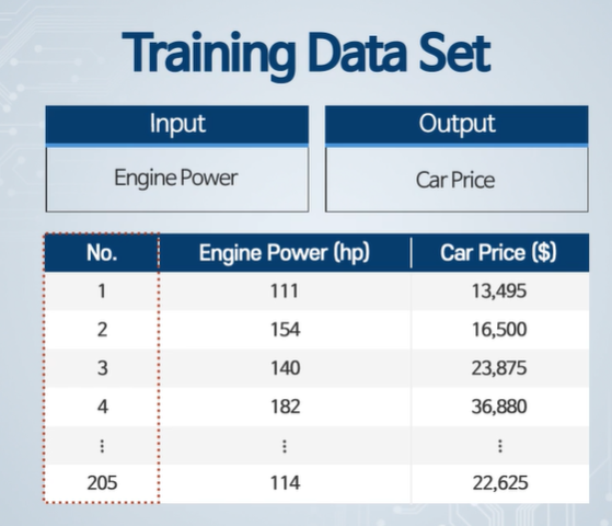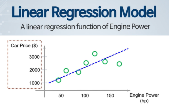 엔진의 파워로 자동차 가격을 예측하는 것도 선형 회귀의 대표적인 예시이다.