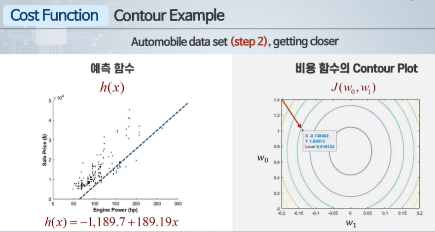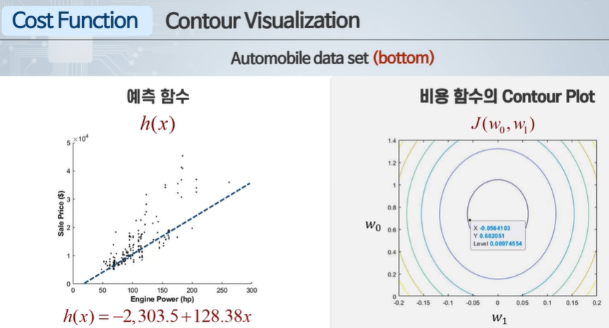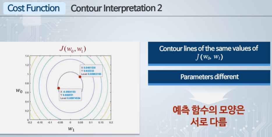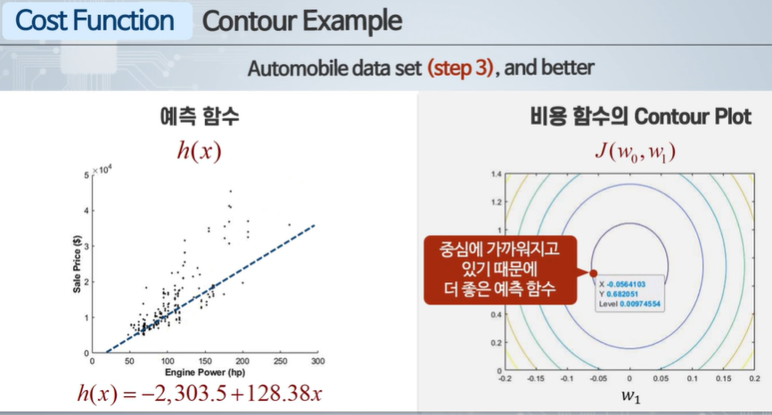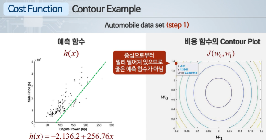중심점에 가까울 수록 좋은 예측함수라고 볼 수 있다.
