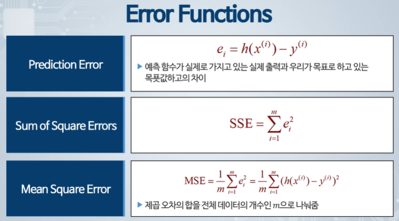 오차의 양수, 음수 차이를 없애기 위해 제곱한다.