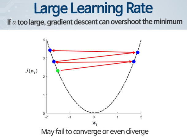 너무 크면 오버슈팅이 발생하여 발산할 수 있다.