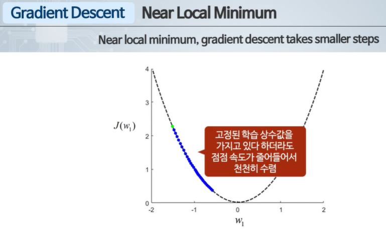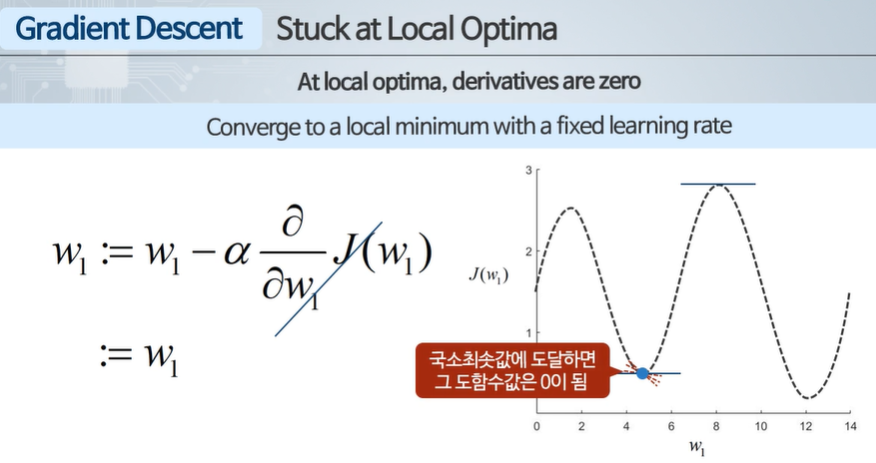 local optimum에 도달하면 도함수 값이 0이 되며 업데이트가 멈추게 된다.