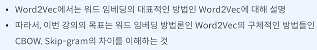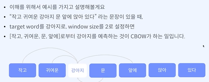 CBOW - 주변 단어를 보고 학습 단어를 배우겠다.