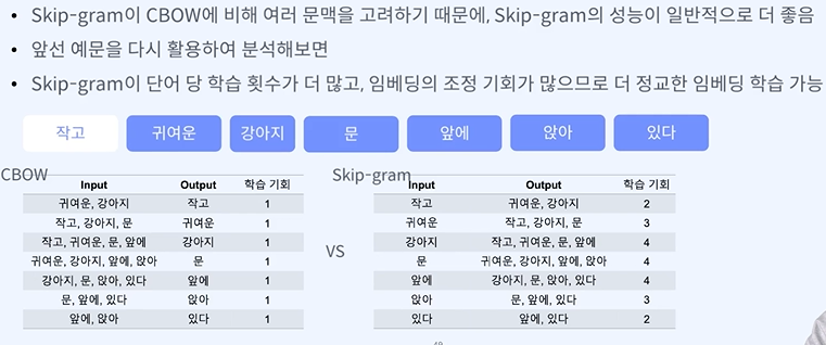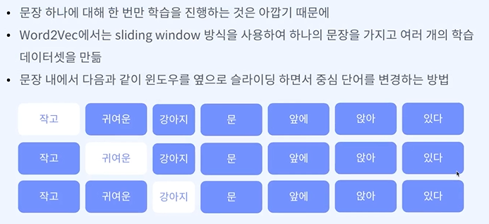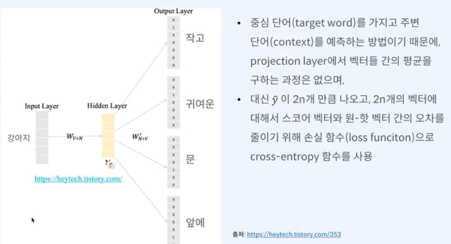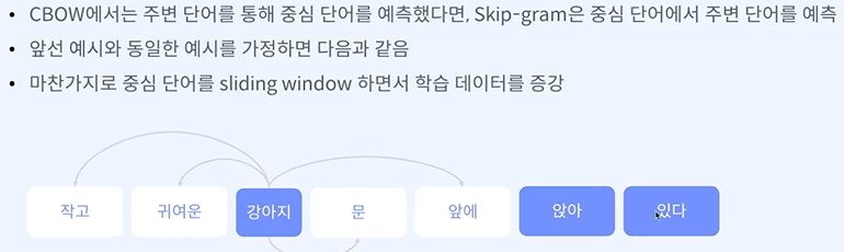 skip -gram - 중심 단어를 보고 주변 단어를 배우겠다.