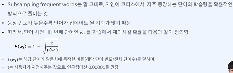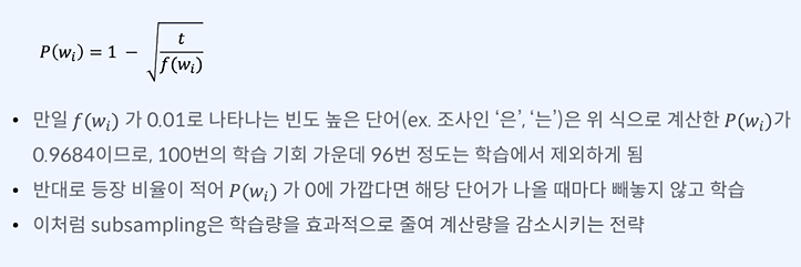 빈도가 적으면 단어를 확실하게 학습하고, 빈도수가 높으면 학습에서 제외하거나 횟수를 제한할 수 있다.