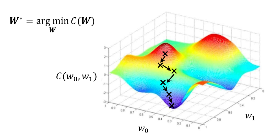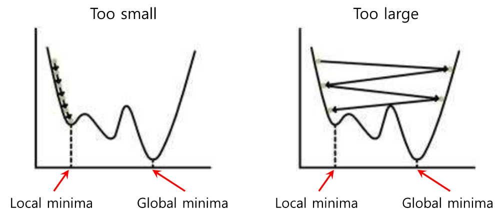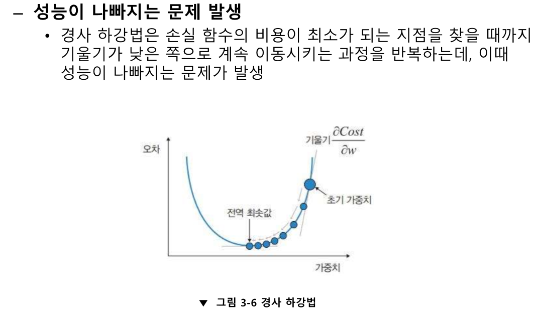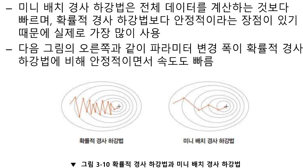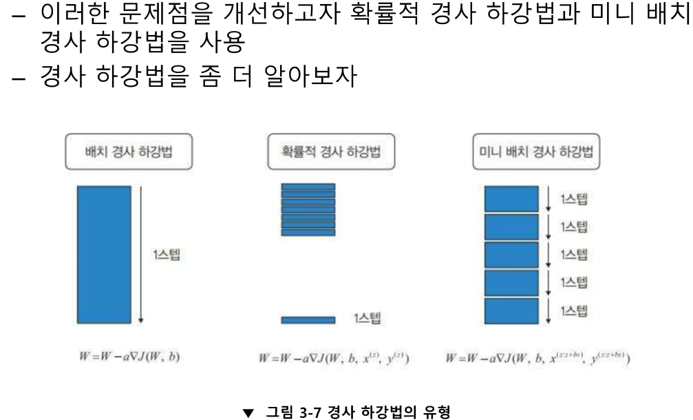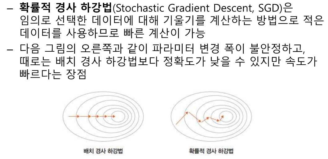 오차를 미분한 값의 반대방향으로 진행한다.