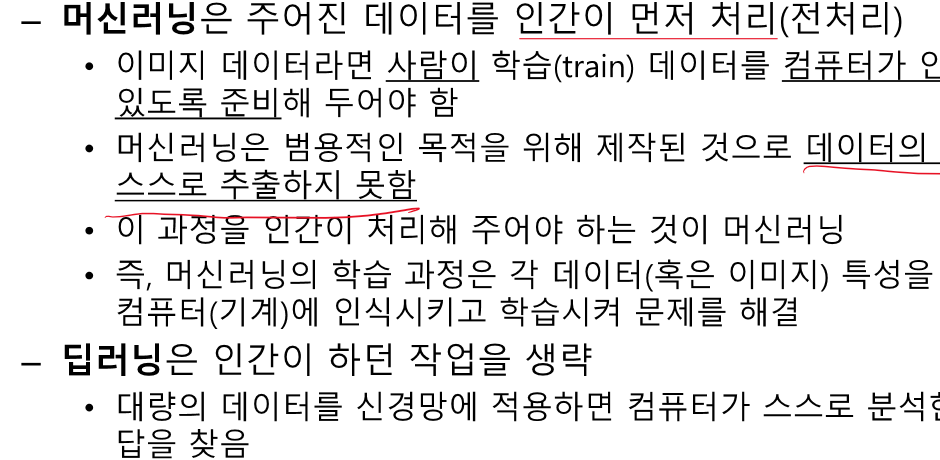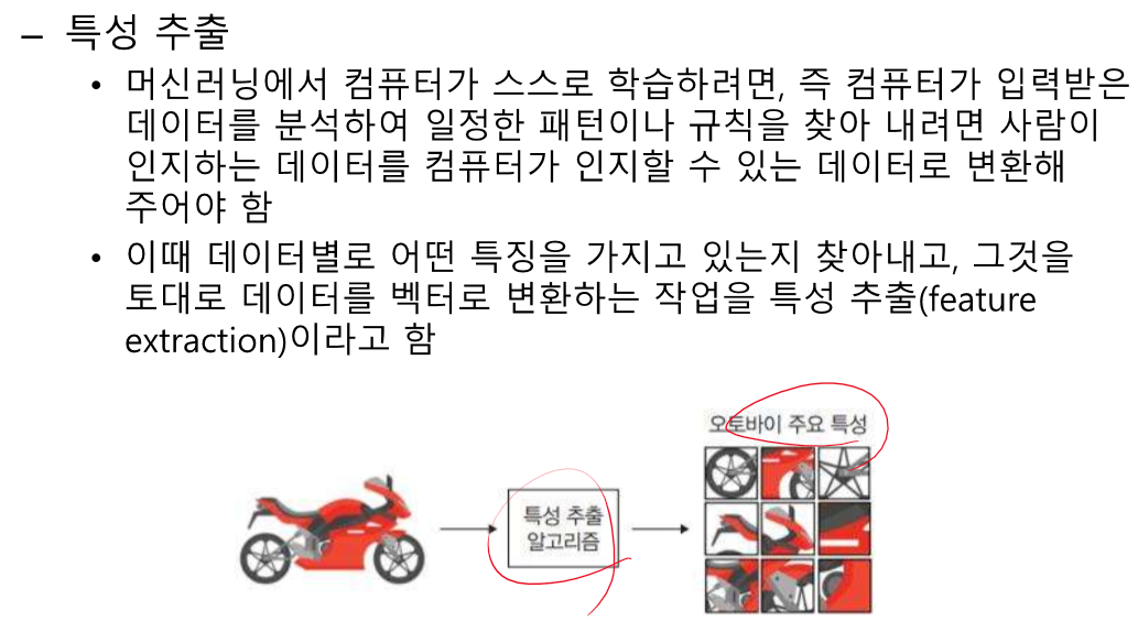 그러니까 머신러닝은 사진을 직접 받지 않고, 인간이 만든 알고리즘을 통해 추출된 사진의 특징을 받는다는거지 ?