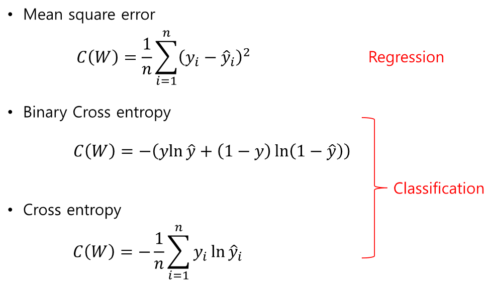 이 것 말고도 다양한 cost function들이 있으니 찾아서 사용해보면 된다.