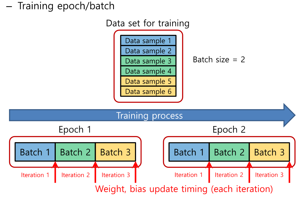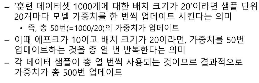 에폭은 너무 적다면 학습이 안될 수도, 너무 크다면 너무 많이 학습해서 오버피팅이 일어날 수 있다.