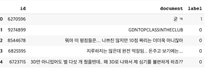 따라서, 주어진 리뷰가 긍정인 경우 1, 부정인 경우 0을 표시한 레이블로 구성되어져 있습니다.