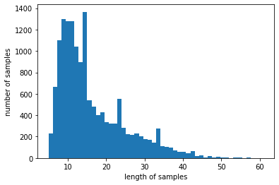 plt.xlabel('length of samples')