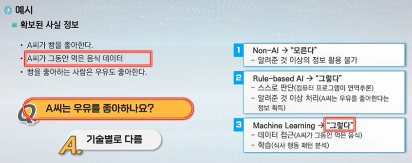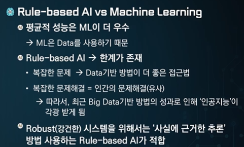 지식 - Rule based AI를 구축하는데 기반이 된다.