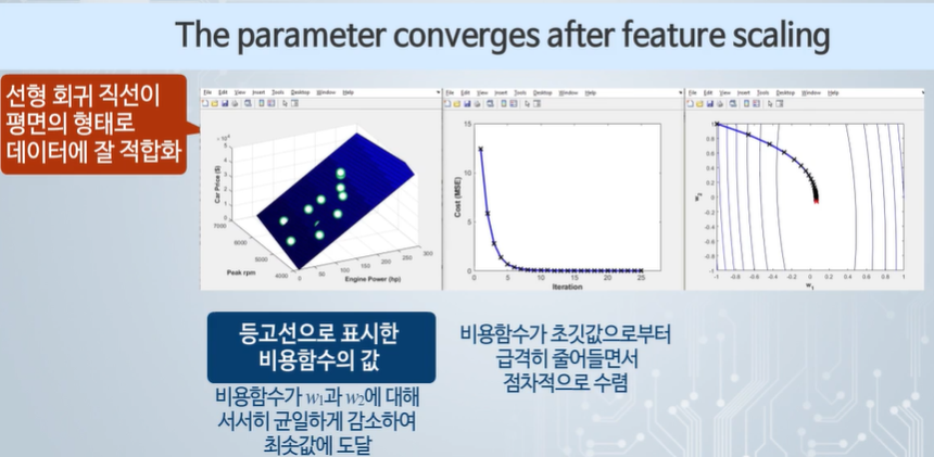스케일링 시 - 경사하강법이 빨라 질 수 있다. 분류 문제에서도 경사 하강법에 도움을 준다.