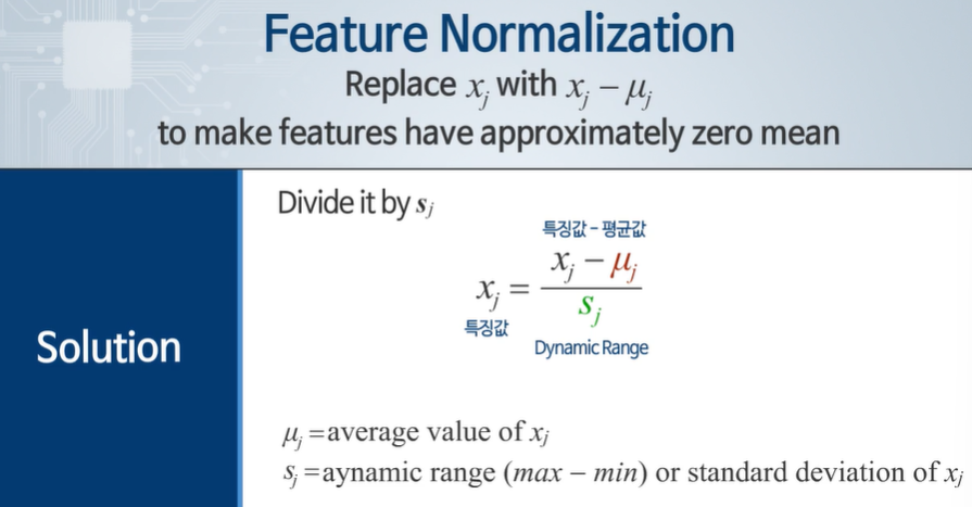 평균 값을 빼주는 이유 : 특징 값이 좌우 균등하게 분포하도록!