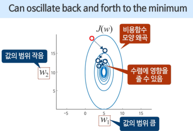 경사 하강법이 잘 적용되지 않을 수 있다.
