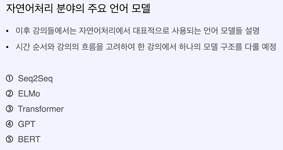 강의목표 - 자연어 처리 작업 수행에 주로 사용되는 모델 구조들에 대해 간략히 알아보자