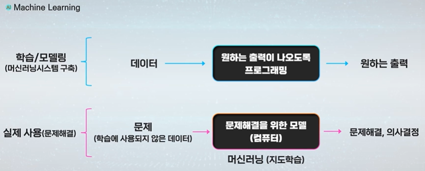 머신러닝은 학습단계와 실 사용 단계로 나눌 수 있다.