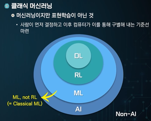 Classical ML = 사람이 데이터에서 특징을 추출한다. -> 그 후 컴퓨터가 구분한다.