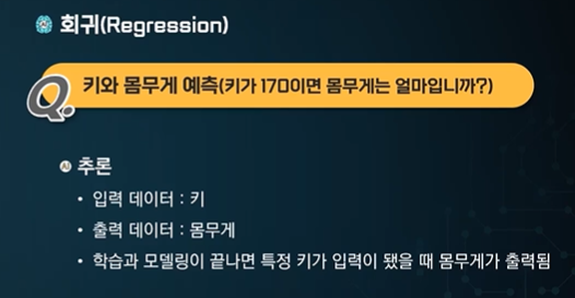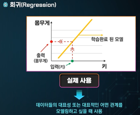 회귀 regression - 키에 따른 몸무게 예측, 내일 기온...