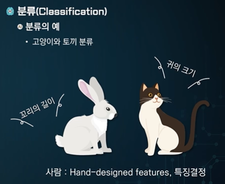 사람이 특징(feature)를 골라줘야된다. -> 이거 너무 귀찮아 보이니까 딥러닝 최고....