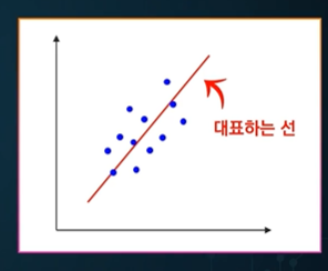 직선이 데이터를 잘 대표한다 - 점들간의 거리가 가장 적다 == loss, error가 적다!