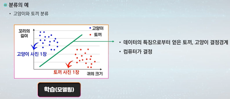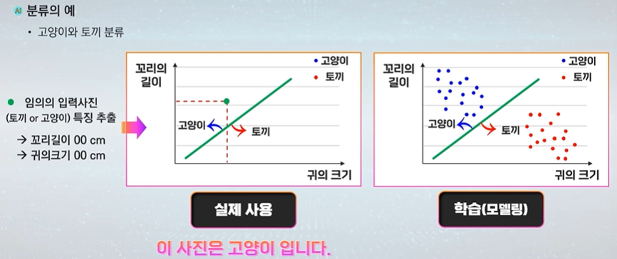 기준선 왼쪽에 위치하므로 고양이라고 판단한다.