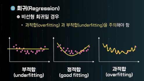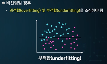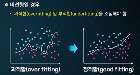 비선형 - 언더피팅, 오버피팅이 발생할 수 있다.