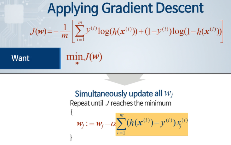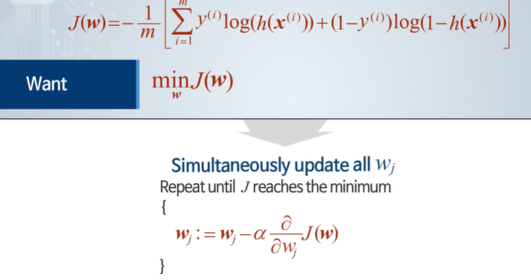 로지스틱 회귀에서 학습은?