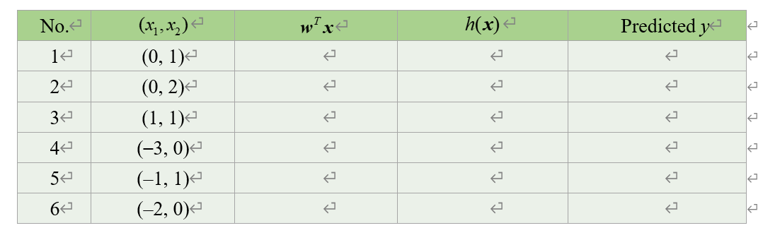 이 데이터들을 학습 데이터로 하여 임의의 데이터들을 2개의 부류로 분류하는 분류기를 설계하려고 한다. 다음 질문에 답하시오