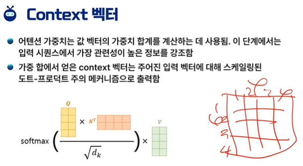 문장 내의 연관 관계를 따지는데 q,k,v를 통해 문장 내의 context가 자동으로 계산이 된다.