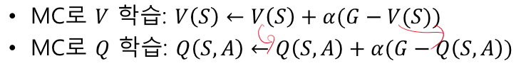 MC : 에피소드가 끝나야 업데이트하기 때문에 다양한 값을 가질 수 있어 분산이 크다.