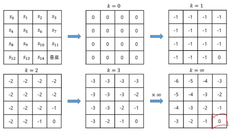 이 행동이 k가 무한에 수렴한다면 최적의 정책이 구해지게 된다.