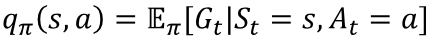 액션 가치 함수 = 현 상태(S)에서 액션(A)의 가치 평가 => 어떤 액션이 좋은지 알려준다. -> 최선 액션의 나열 == 정책