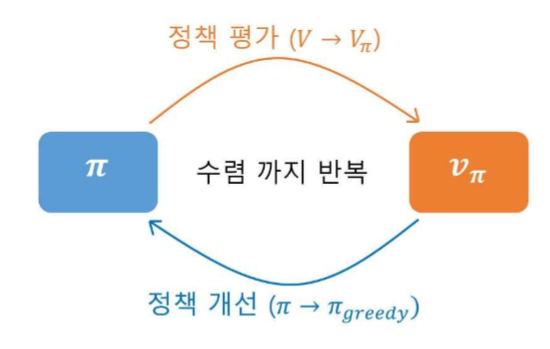 정책 개선 = 정책 평가의 결과에 따라 새로운 그리디 정책 선정