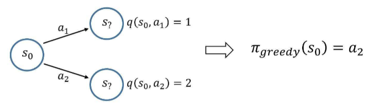정책 개선 단계에서 그리디 정책을 만들 수 없다. => 전이확률 P를 모르기 때문에 액션 a를 취했을 때 어떤 상태 S에 도달할 지 모른다.