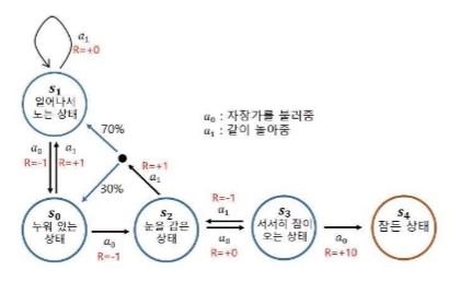 마르코프 결정 프로세스 == MDP = MRP에 액션(A)의 개념이 추가되었다.