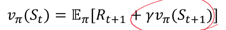 감쇠인자(0~1)가 추가되어 미래의 보상을 얼마나 중요하게 여길지 알려주는 파라미터가 있다. -> 리턴이 과도하게 커지는 현상 방지, 미래의 불확실성 반영