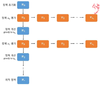 수렴할때 까지 반복한 것을 또 최적의 정책을 찾을 때 까지 반복해야 하므로 반복 횟수가 너무 많다!
