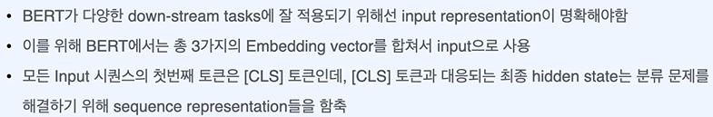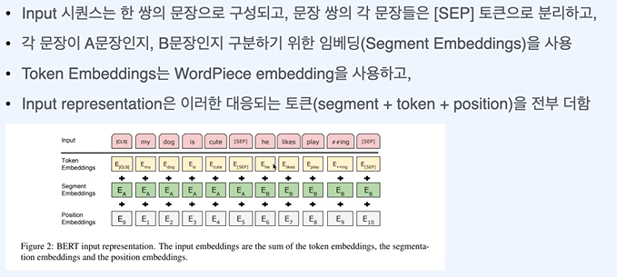 문장이 어디에 시작해서 끝나는지 말해줘야 한다. == input retresentation