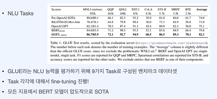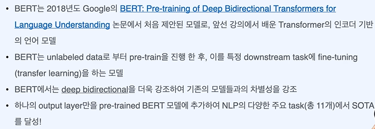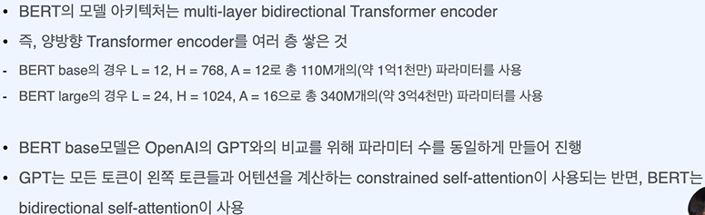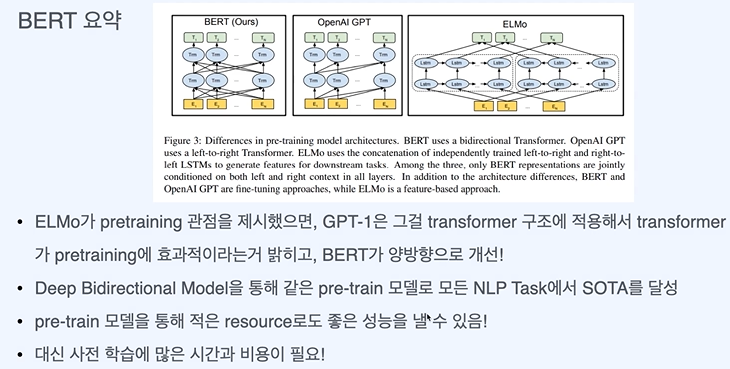 encorder를 사용하고 양방향 학습을 한다는 것이 GPT와의 차별성을 가졌다.